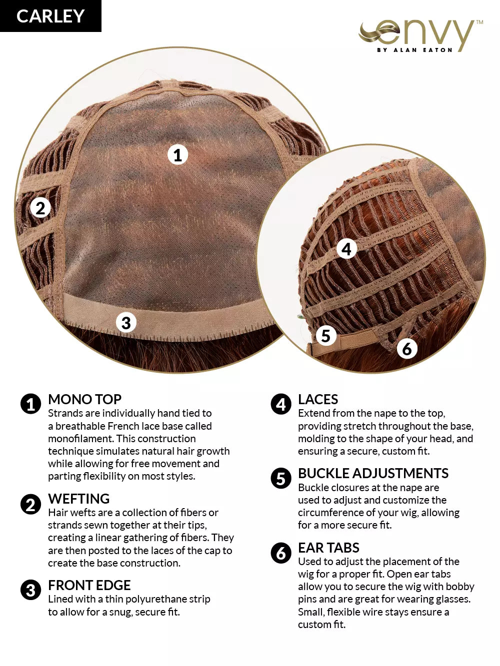 CARLEY is ENVY’s new take on a timeless style and is available in 12 new rooted shades (35 colors in all). With soft, face-framing layers, wispy bangs, and our Mono Top construction simulating natural hair growth and movement, CARLEY is ready-to-impress right out of the box.