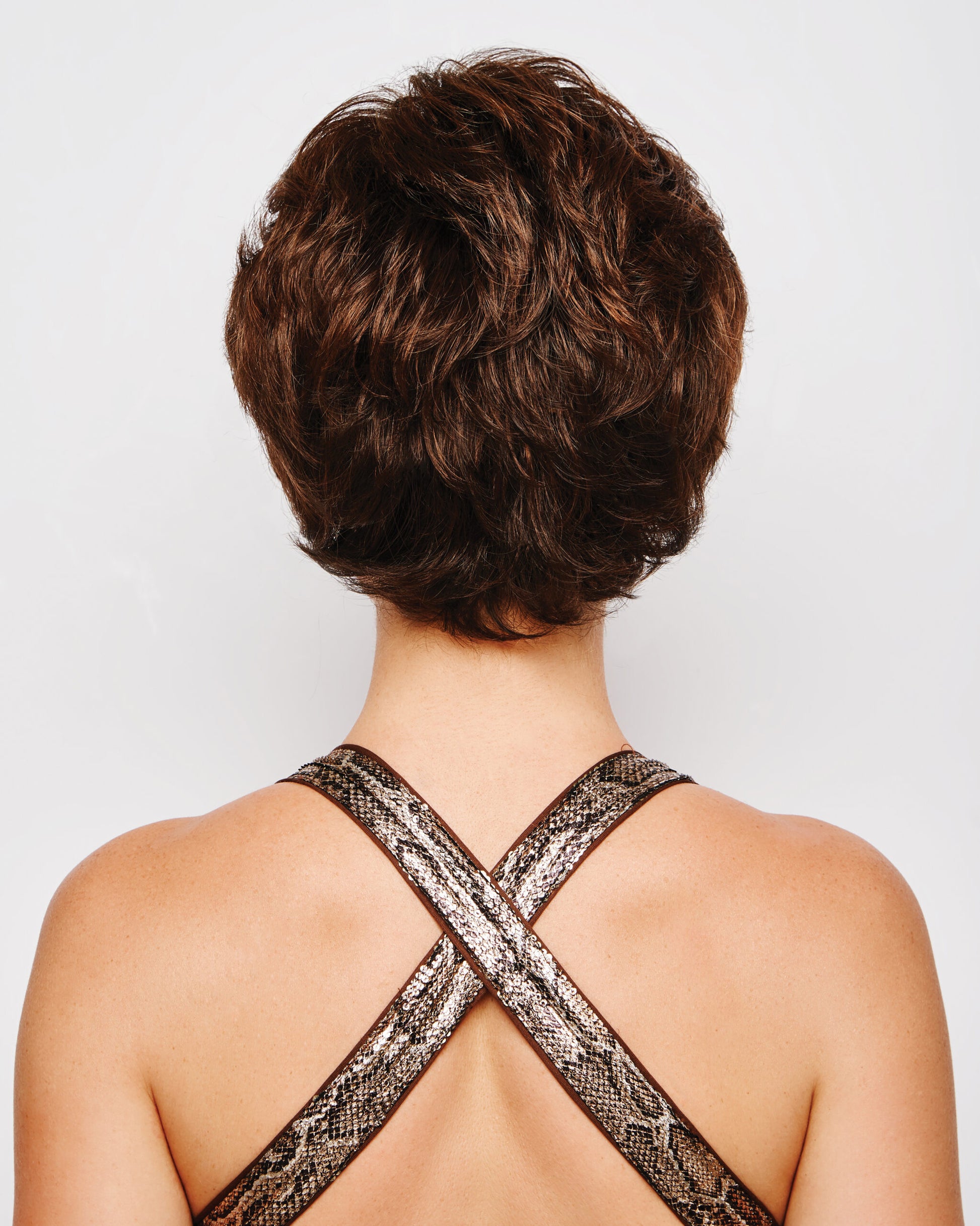 A fresh take on the classic fluff-back silhouette, this short, barely waved cut includes a hand-tied top and sheer lace front for natural looking, off-the-face styling.