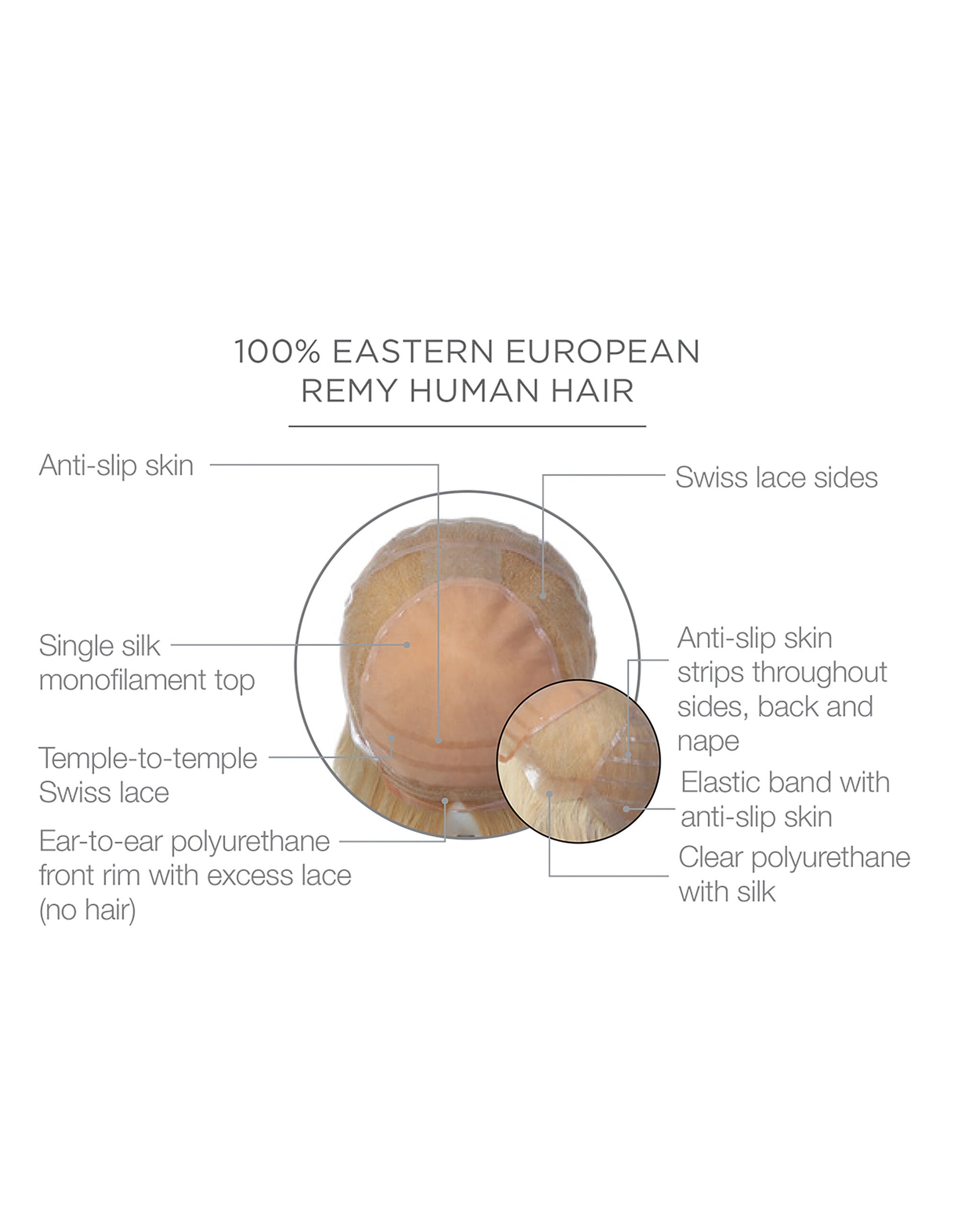 This leader of the pack has pure luxury and design. No look is off limits when you pair this length with a 100% hand-tied cap. Trim back the lace to customize your final look and change your part using the hand-tied monofilament top. The 100% Eastern European Remy human hair has a soft feel with a natural density. Be drop dead gorgeous in the cut where possibilities are endless!