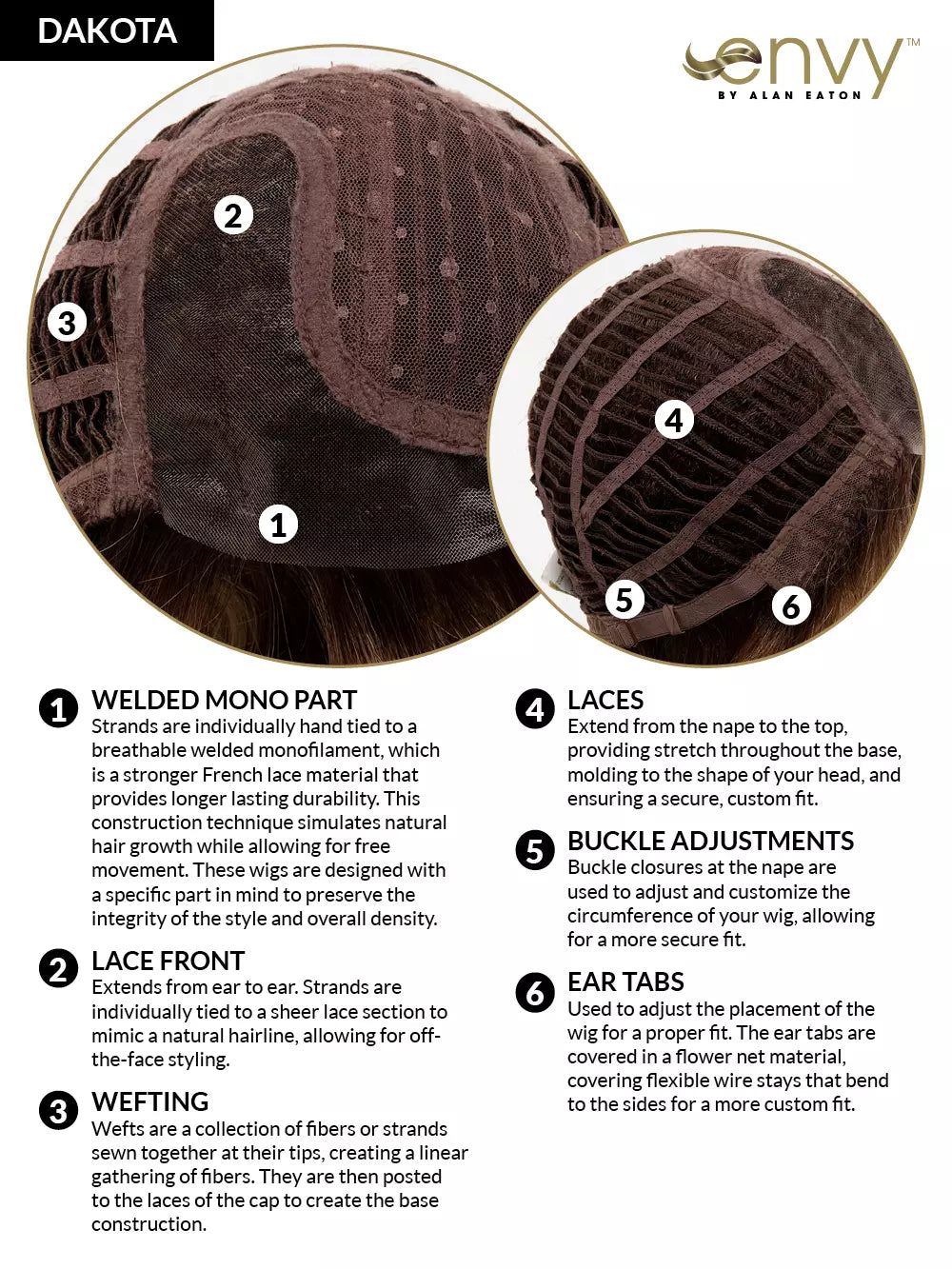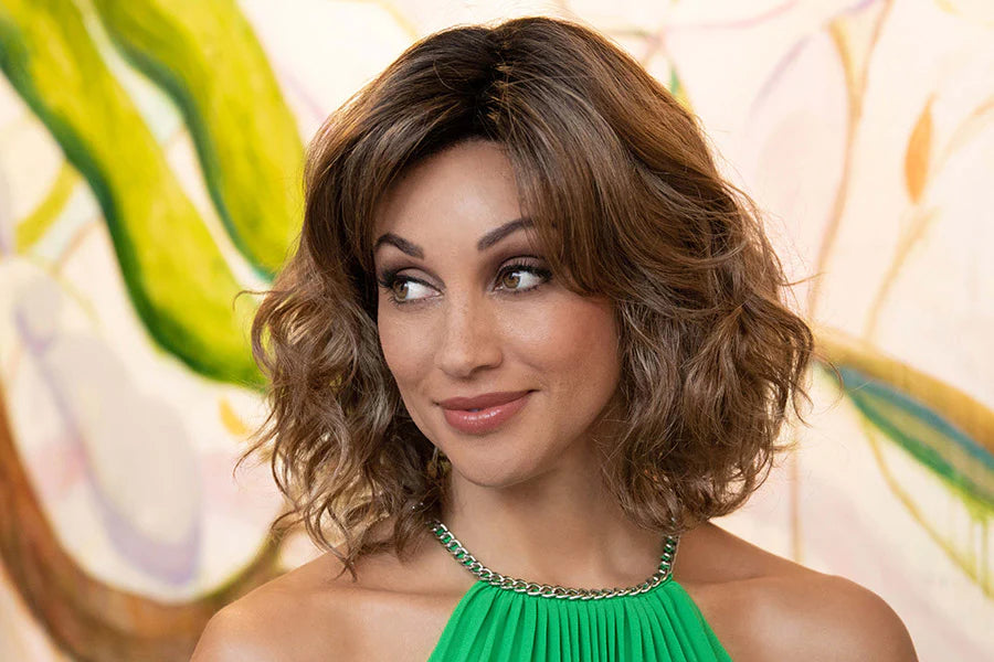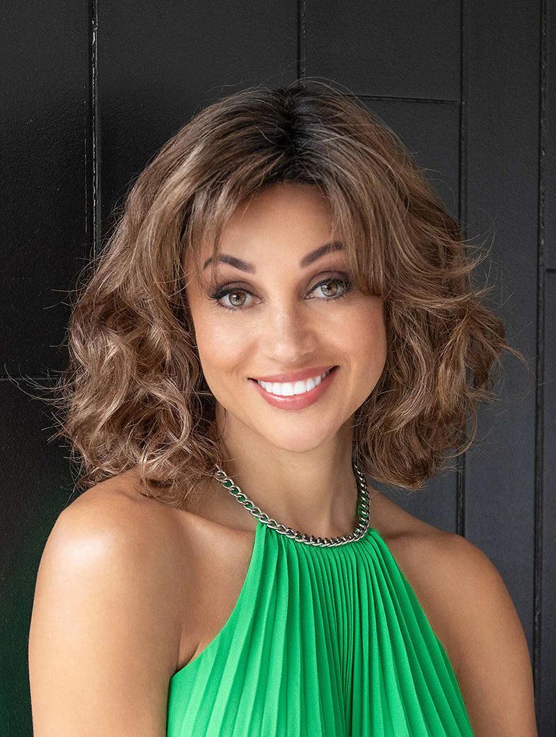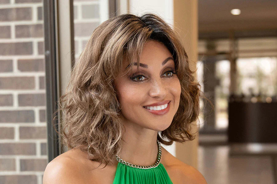 DAKOTA’s easy, shoulder-length waves and long, feathered fringe combine for a bombshell look that will turn heads. Its soft, breathable cap is perfect for sensitive scalps or those undergoing chemotherapy, while its Lace Front Mono Part construction mimics your natural hairline and hair growth.