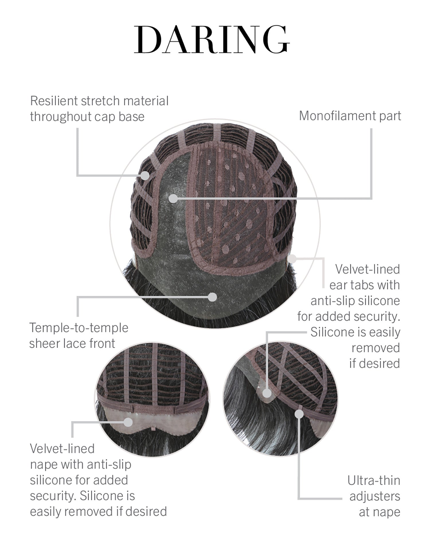 Length that speaks volumes. The perfectly shaped lace front was crafted to an amazingly realistic hairline. The left monofilament part can accommodate a defined look or something undone and natural. More length equals more options. Style the hair slicked back or down and messy around the face. With this precise cut, no look is off limits.