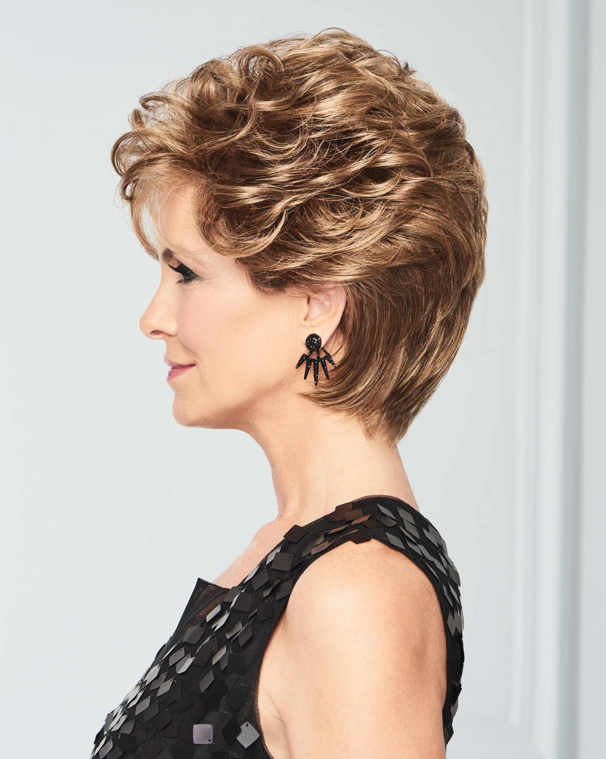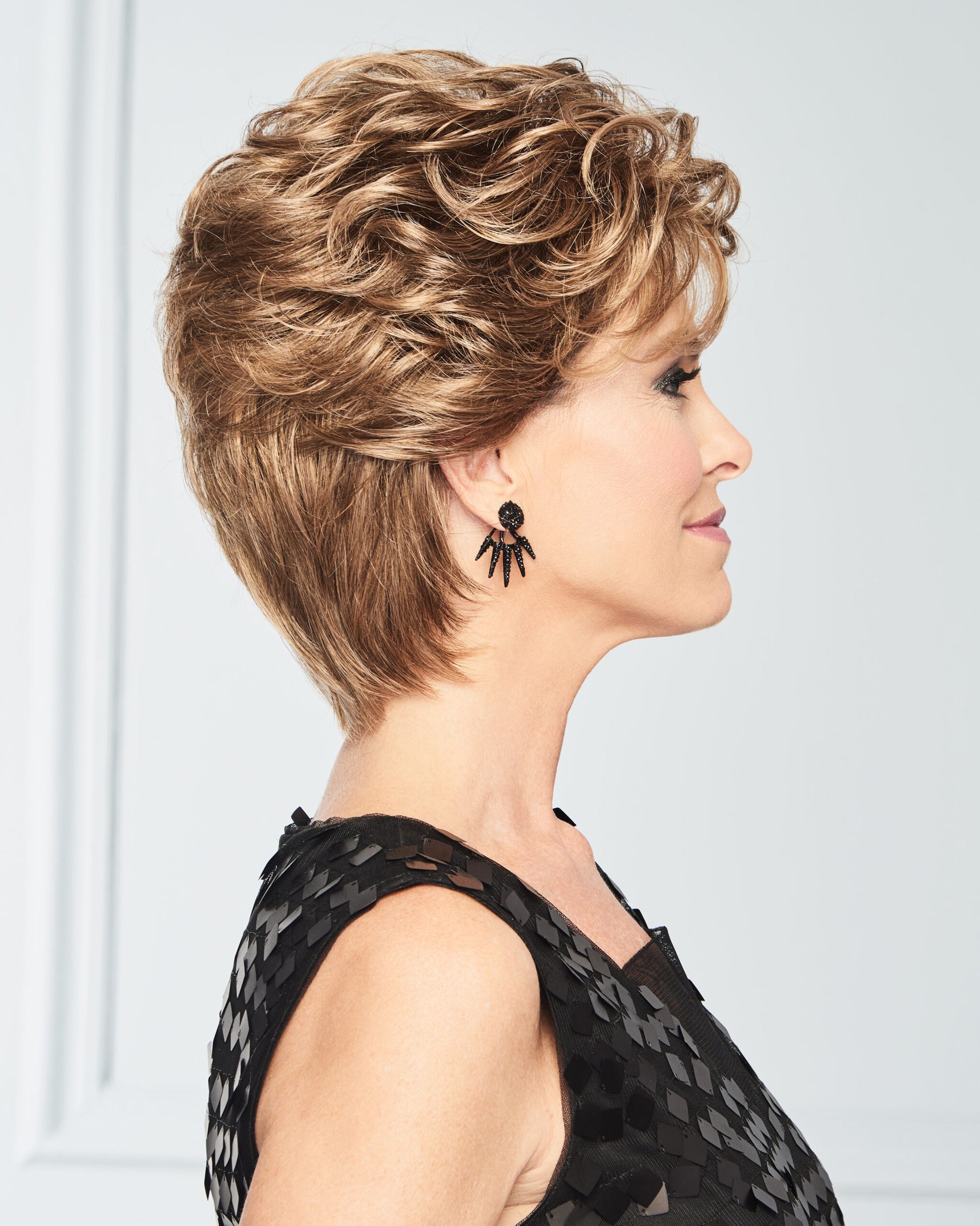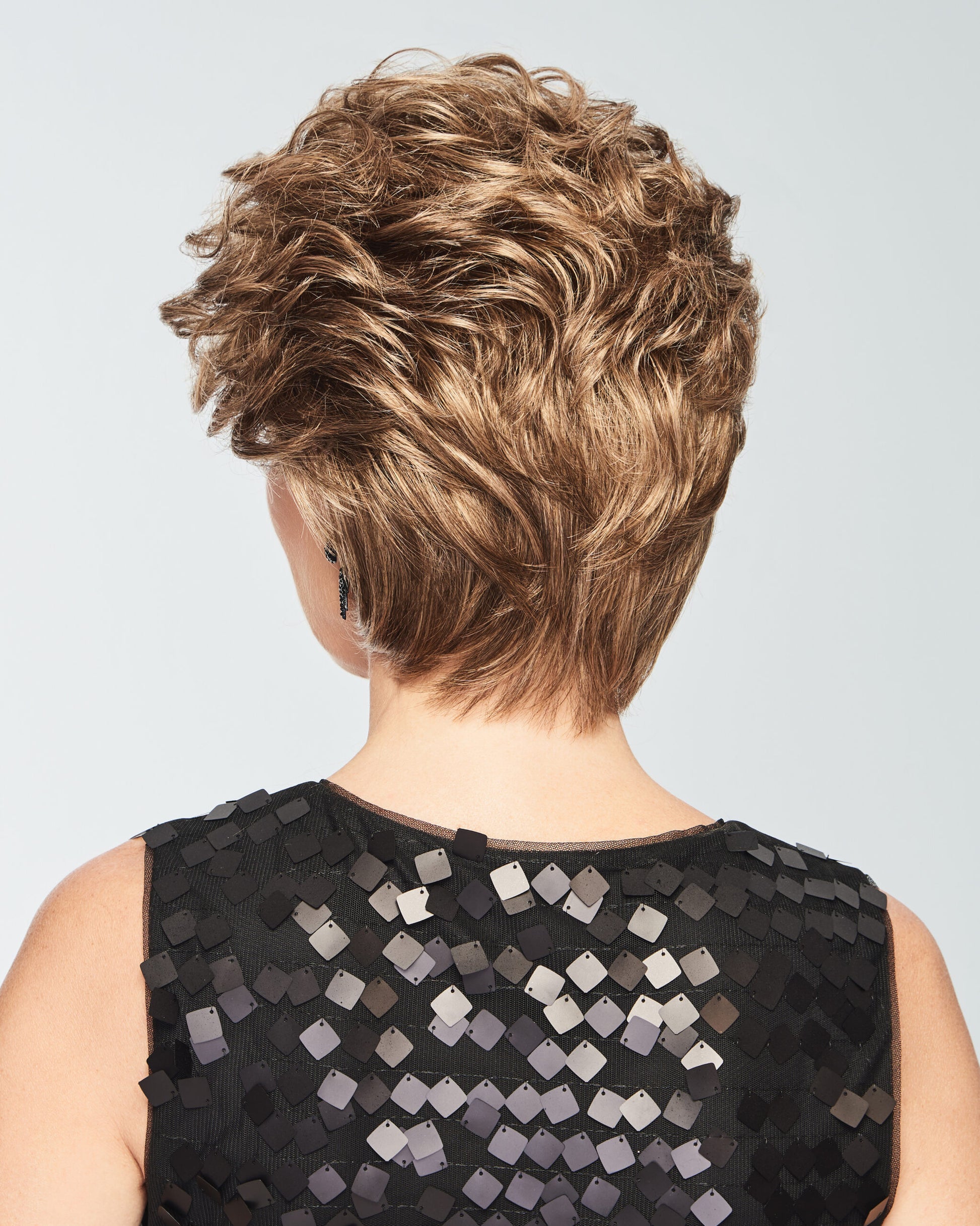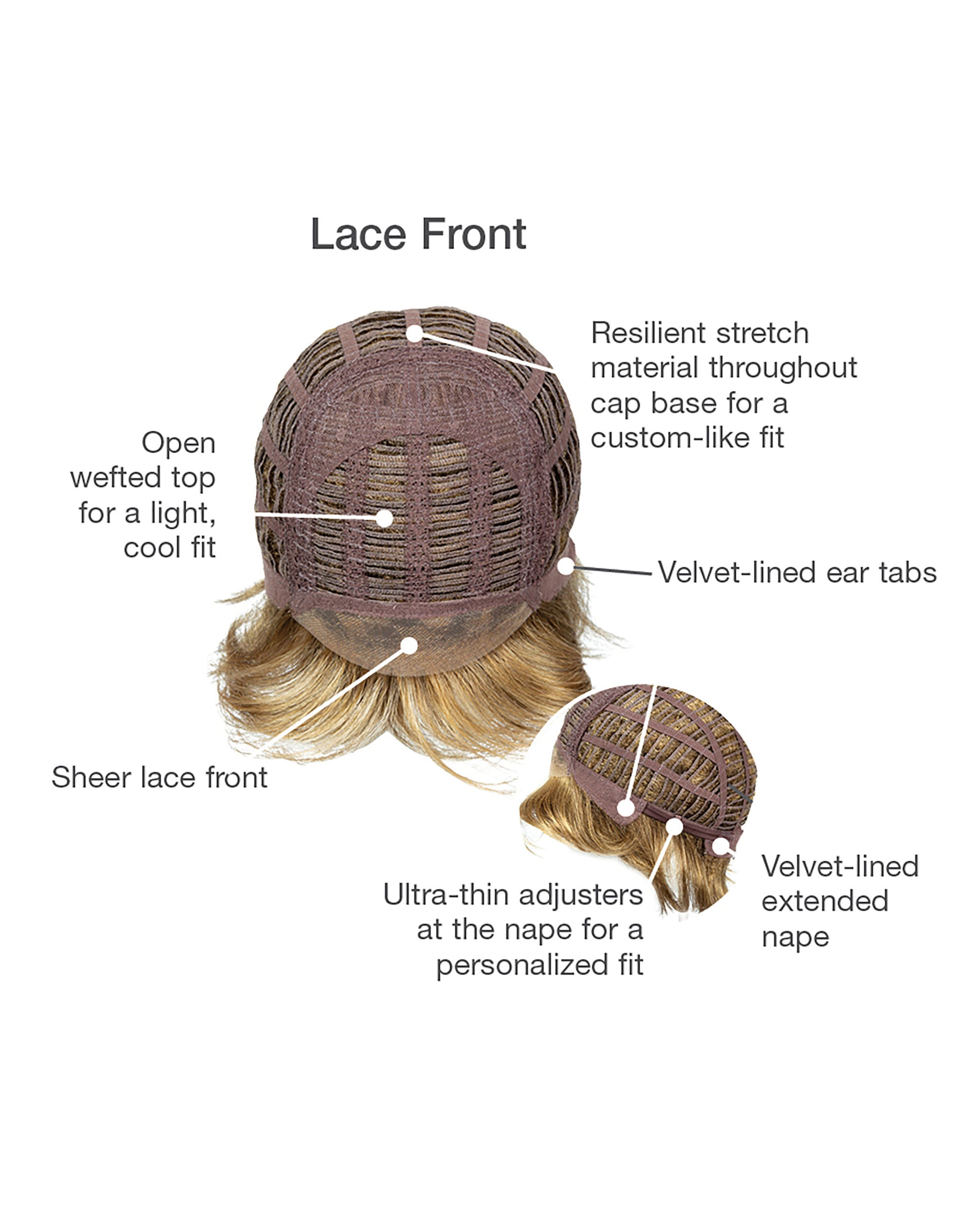 Get full on volume with this multi-layered, sculpted cut. Soft, barrel waves throughout the top and sides combine with a sheer lace front for added styling versatility while the gently tapered nape gives a polished, tailored finish to the overall shape.