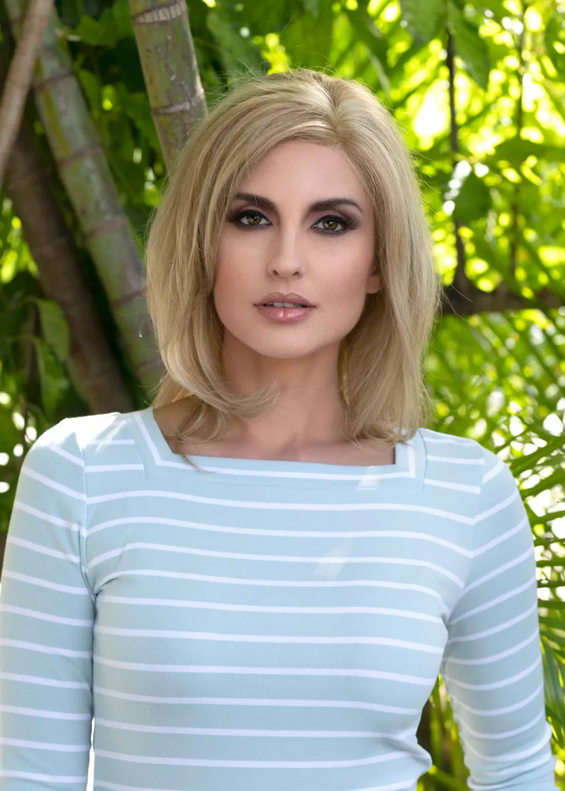 Made of 100% human hair and available in 9 vibrant multi-dimensional shades, HANNAH by ENVY is an asymmetrical bob with heavy front fringe and sleek, side-swept bangs. With its Hand-Tied, Mono Top Lace Front construction providing the most authentic hairline and movement, plus built-in poly tabs for a custom fit, HANNAH takes beauty and confidence to the next level.
