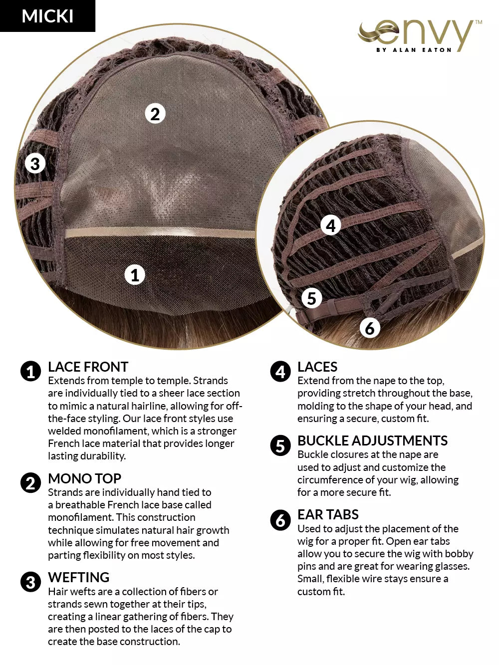 Soft layering and razor-soft edges flip out to give MICKI by ENVY its spunky textured appearance. Our lightweight Mono Top construction and superior Lace Front technology create the look of real hair growth and a perfectly invisible hairline. Style MICKI back or to the side to create your own unique hair-fashion statement.