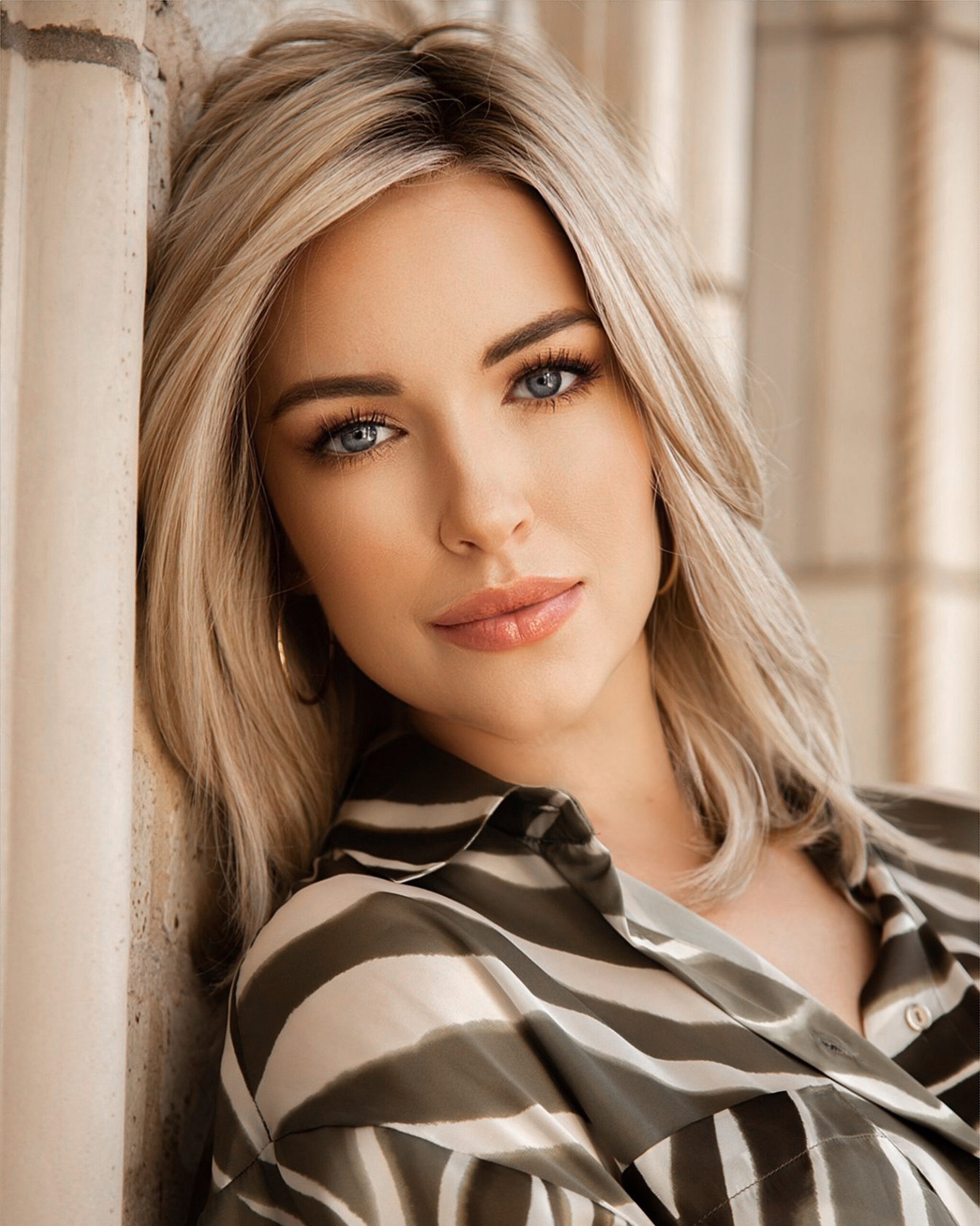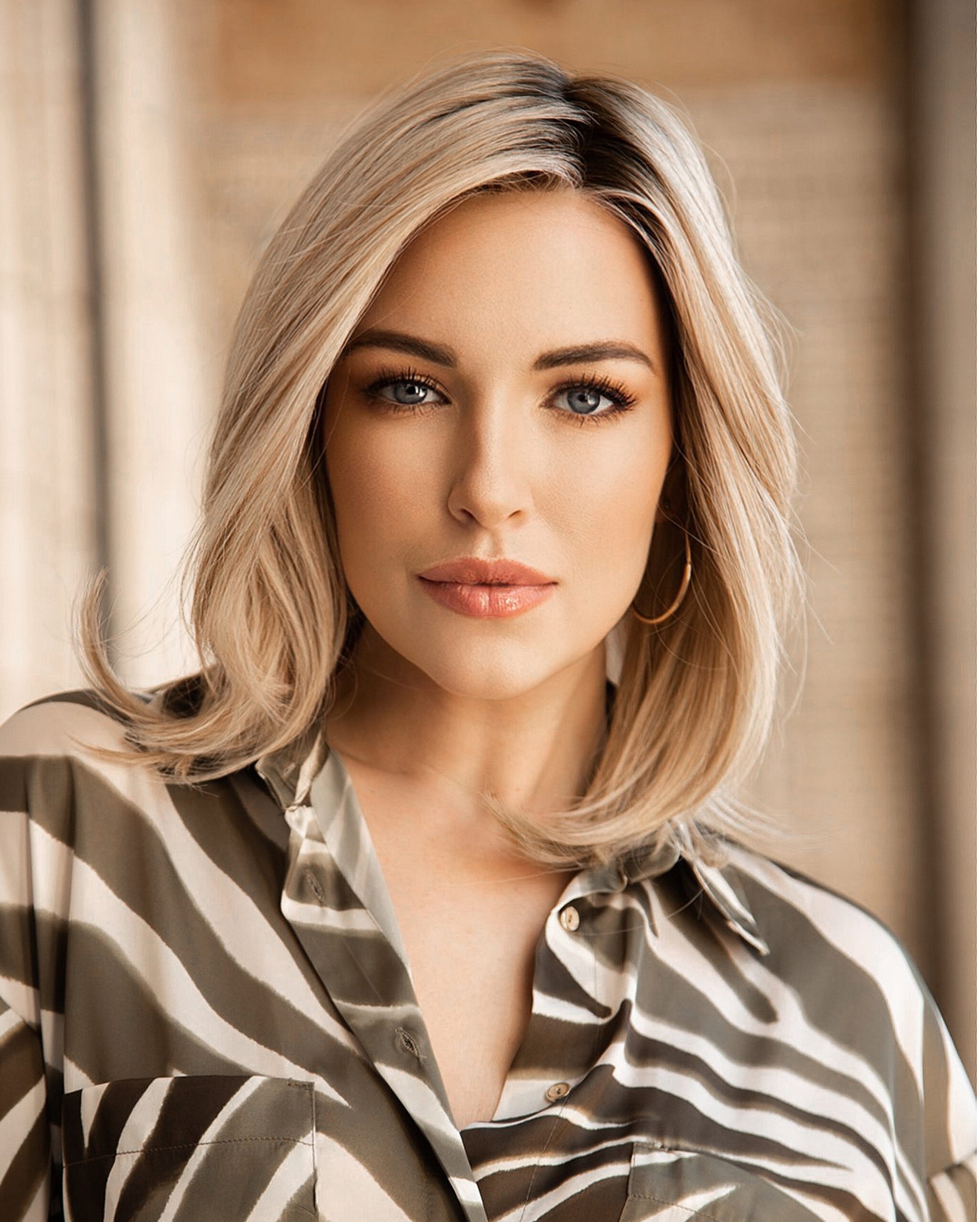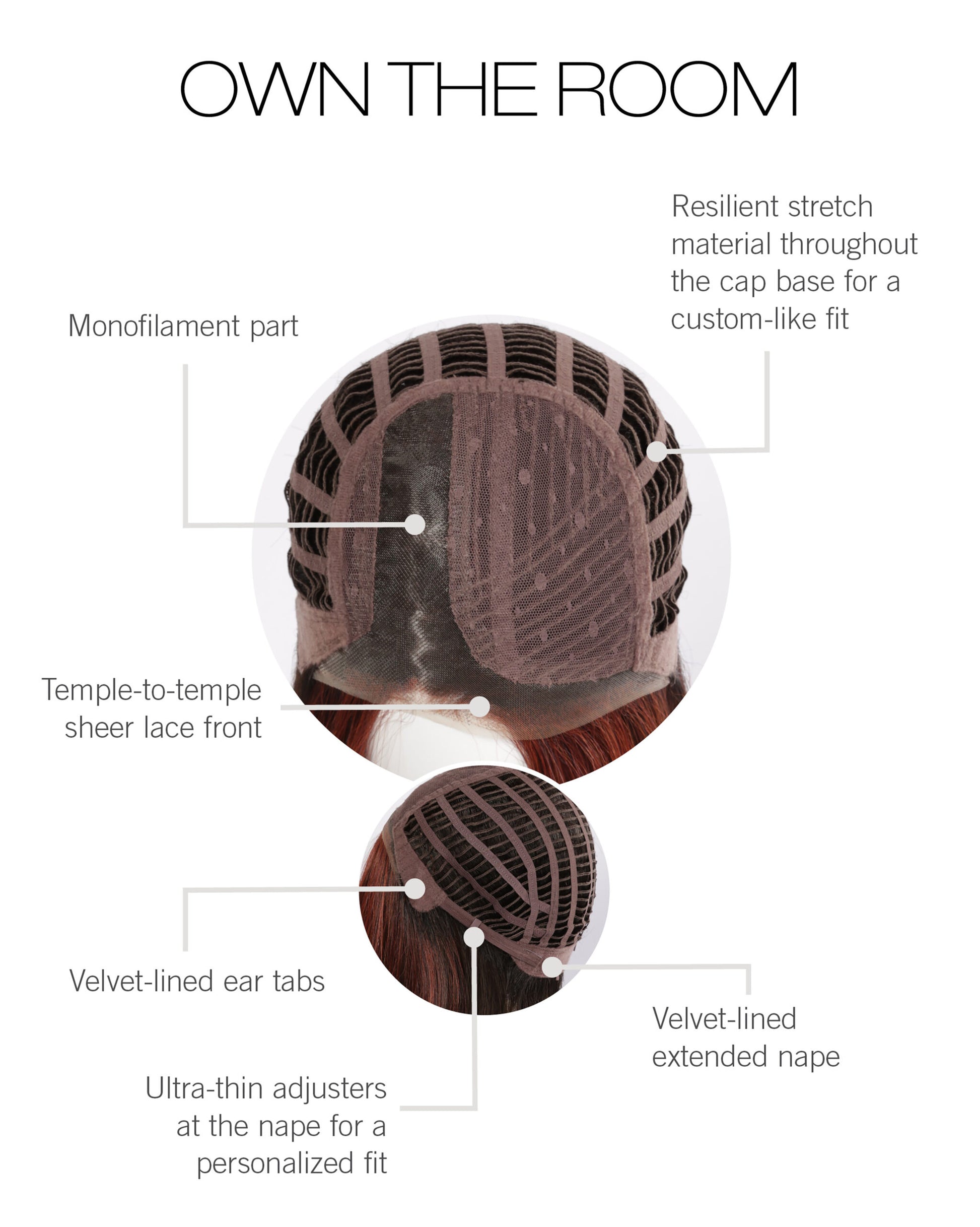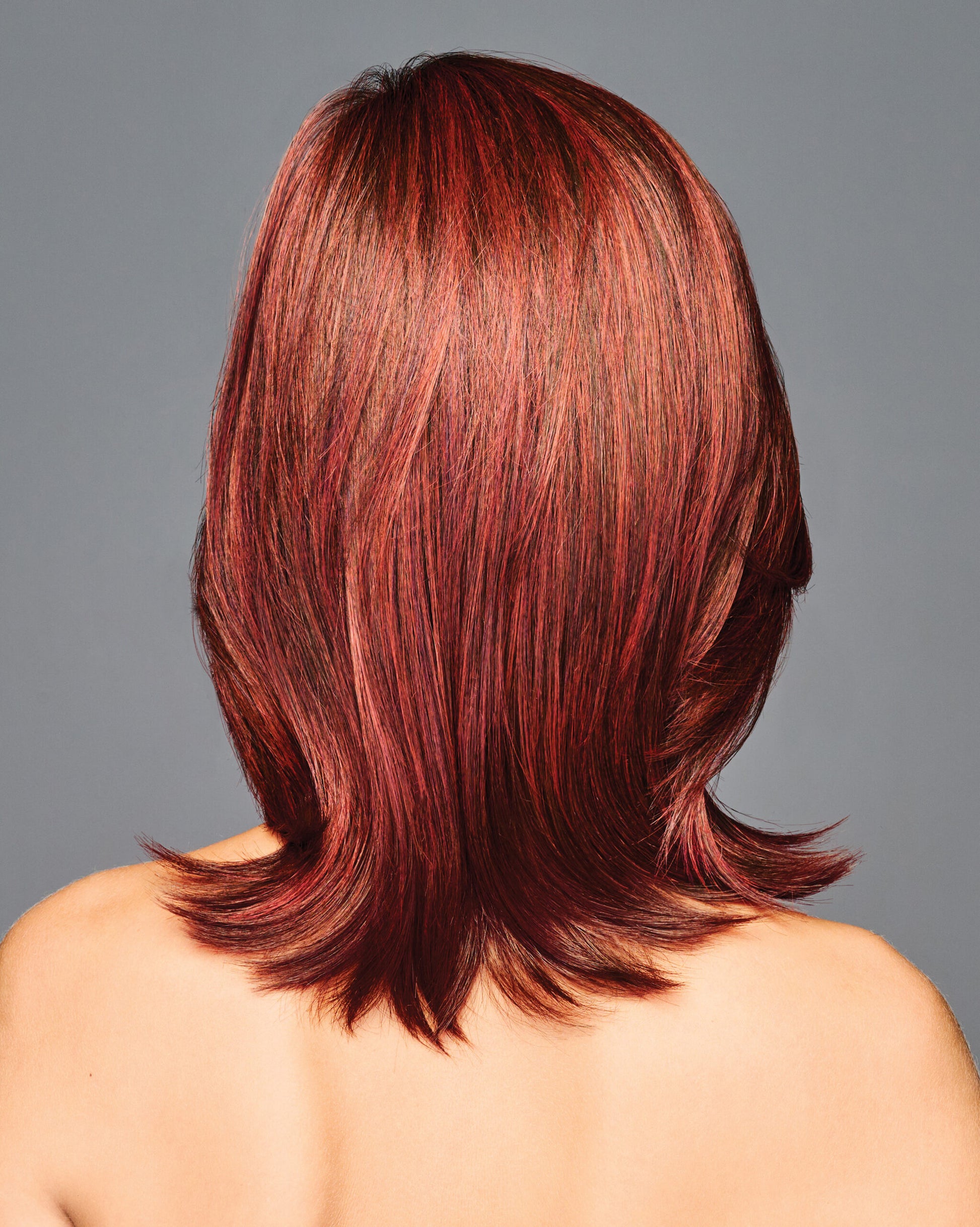 Long sleek layers in a mid-length cut create the look of length. Ageless and effortless. Easier to maintain and flattering for women of all ages. An extended lace front lets you wear half up or brushed away from the face with a beautifully natural-looking hairline. You will easily OWN THE ROOM in this youthful, seductive style.