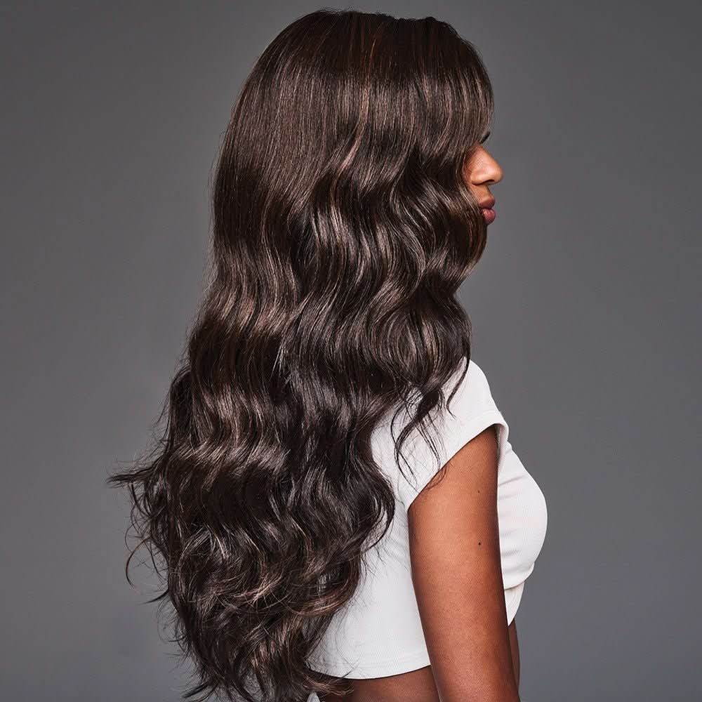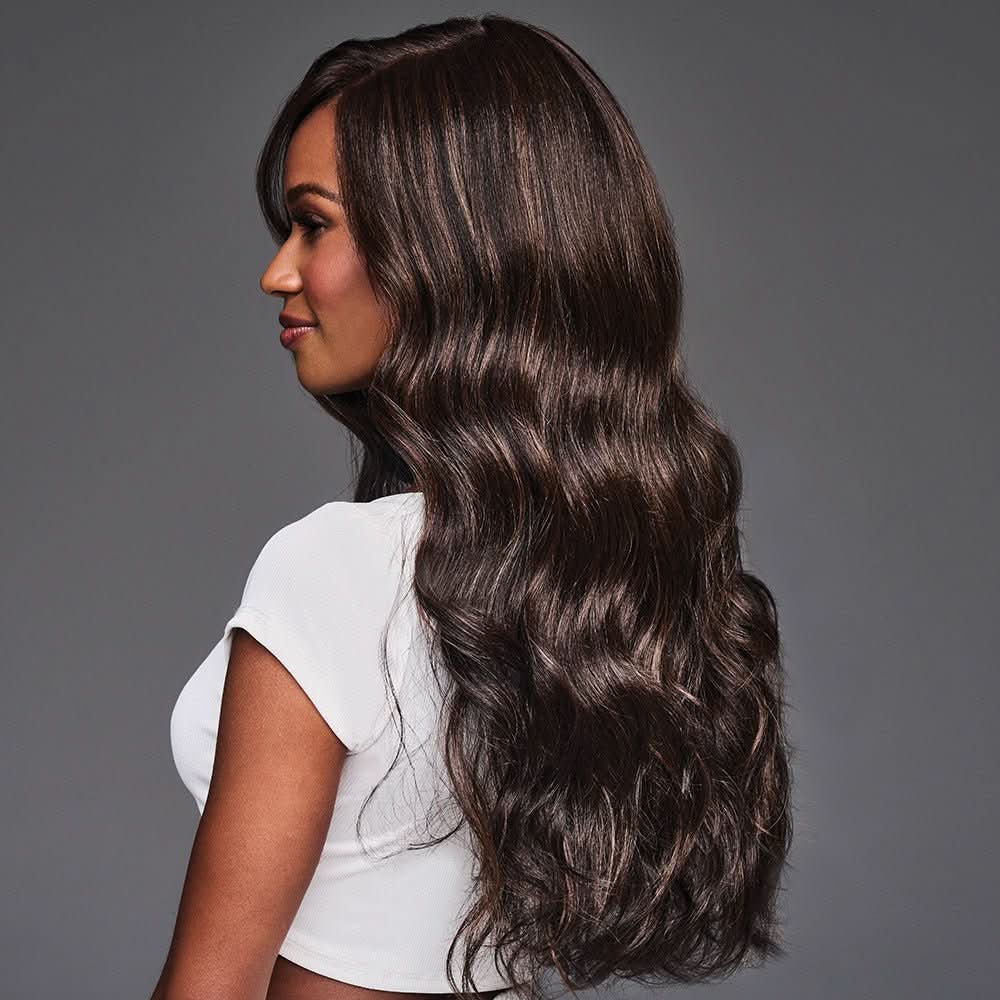 Long lightweight layers of soft, barrel curl waves give RAVEN her glamorous mermaid-turned-model vibe. As the longest style in the collection, she is a true talent with the ability to be worn braided or twisted into an updo or smoothed out straight.