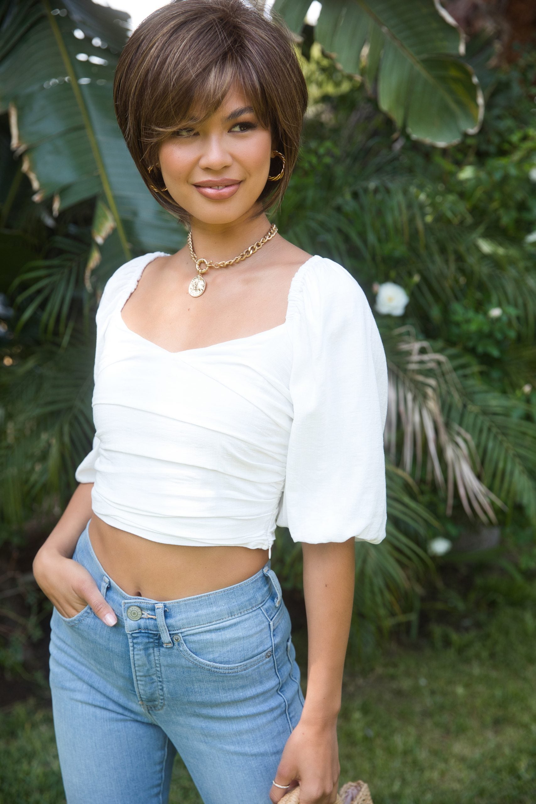 Reese from our Noriko Collection is a short-length synthetic wig. This straight ready-to-wear wig is one of our popular style and best seller from the Noriko Collection. Reese is a sassy bob with tousled layers and an edgy fringe. Reese is machine made with adjustable tabs in the back nape area to allow a more comfortable fit. The result is a comfortable fit with a natural look that is both fashionable and easy to wear.