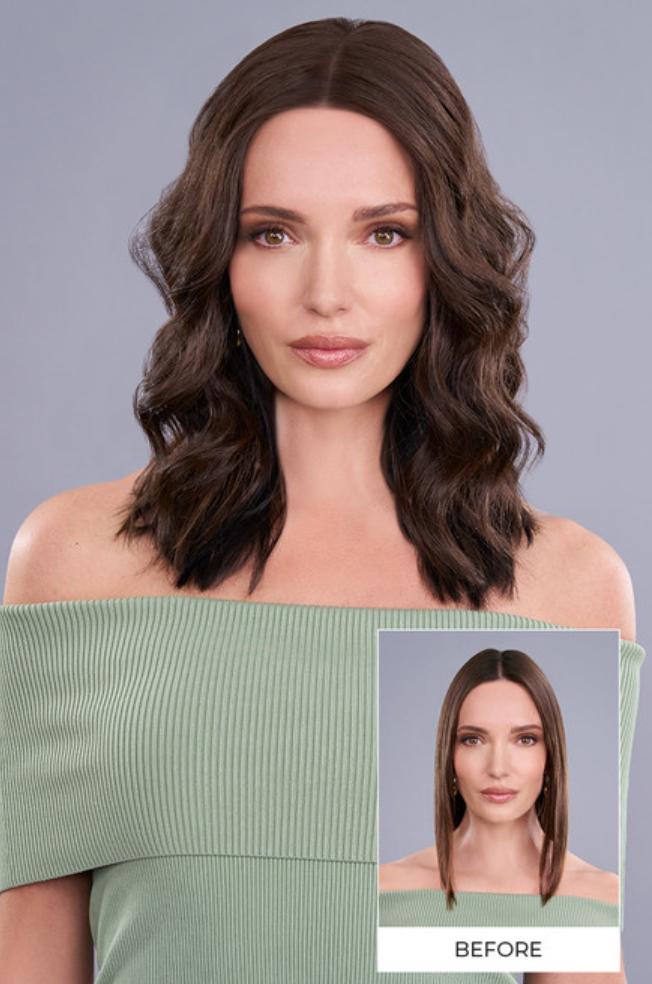 Designed for mid to progressive hair loss, the Top Trend Lace HD Wavy 14” topper blends effortless movement with innovative construction. Made with heat friendly fiber, this topper allows for versatile styling with hot tools, while maintaining its soft S-wave pattern-simply scrunch after washing to revive its shape. The extended SmartLace™ front creates a natural hairline, while the double monofilament top conceals the front clip for seamless parting. Machine-wefted sides and back add volume and coverage, while strategically placed clips provide a secure, comfortable fit. Top Trend Lace is available in grey shades, introducing Jon Renau’s first ever 18" grey topper.